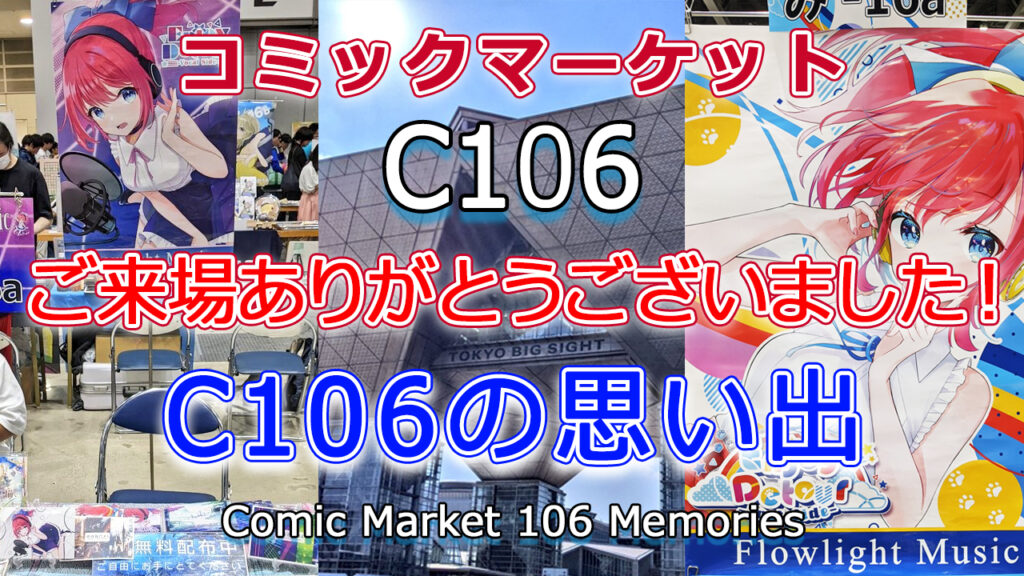 コミックマーケット106のお礼と振り返り配信を当日にしましたので、Youtubeのアーカイブを流しつつブログを読んで頂ければ幸いですm(_ _)m